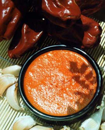 Sazonar con algo de pimentón, dulce o picante El mojo rojo se sirve con platos fuertes como asados de cabrito o carne de cerdo higado o riñones, con pescado frito, queso fresco de lanzarote, o papas arrugadas.